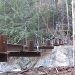 - Bridge installation nearly complete; tImber rails and posts recreate appearance of the original timber structure.